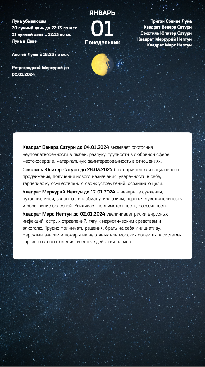 Астрологический календарь – ваш незаменимый помощник в планировании.